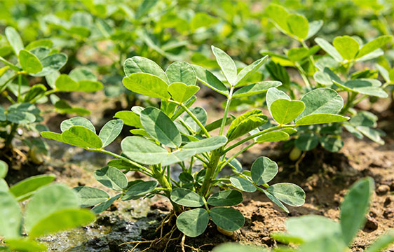 根据花生不同生育期生长特点,精准开展化控调控,优化株型结构,实现促产提质。前期促根、促矮化分蘖,即3—5叶期芸苔素内酯以及锌、镁等微量元素叶面肥兑水喷施,促进主根深扎、侧枝早生多发;中期促花下针,即花前期、始花期,赤霉吲哚类调节剂及硼肥 兑水喷施,促进花叶健壮、多开花及低位下针;后期控旺,盛花期至结荚初期(当株高超过35—40厘米时)烯效唑等缩节胺类药适量兑水喷施,控上促下,抑制徒长,促进养分向荚果转运,提高饱果率和籽粒重。